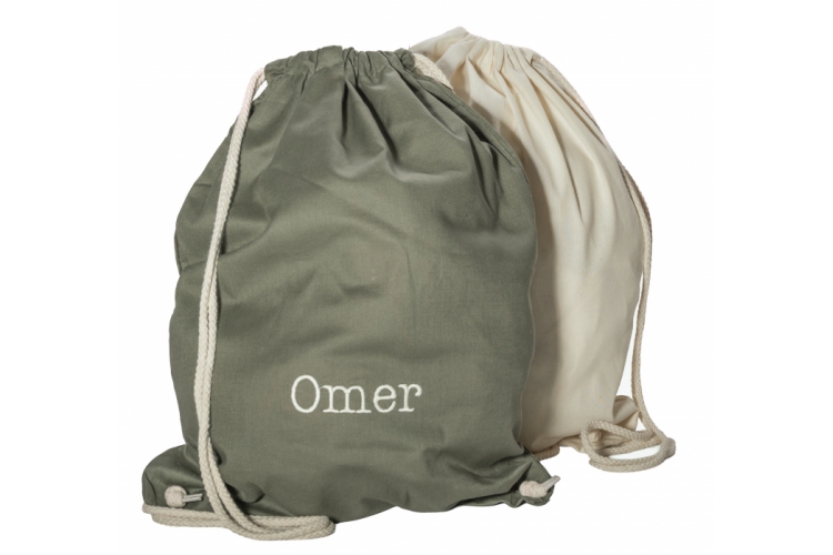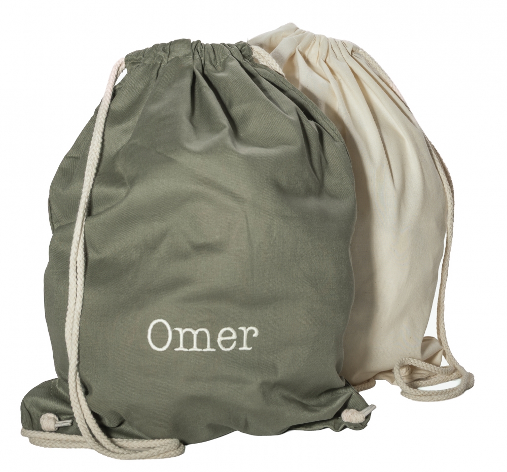 Omschrijving: gymzakje in katoen met linten aan beide kanten