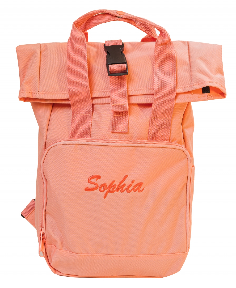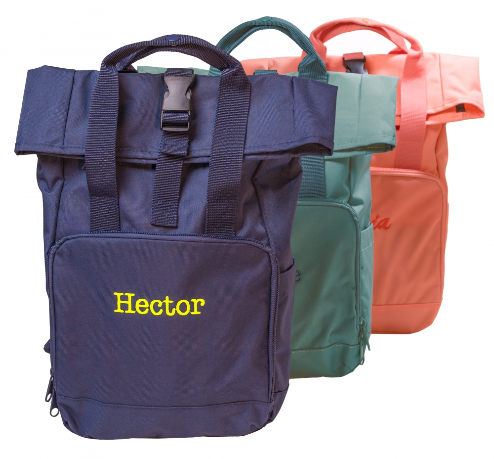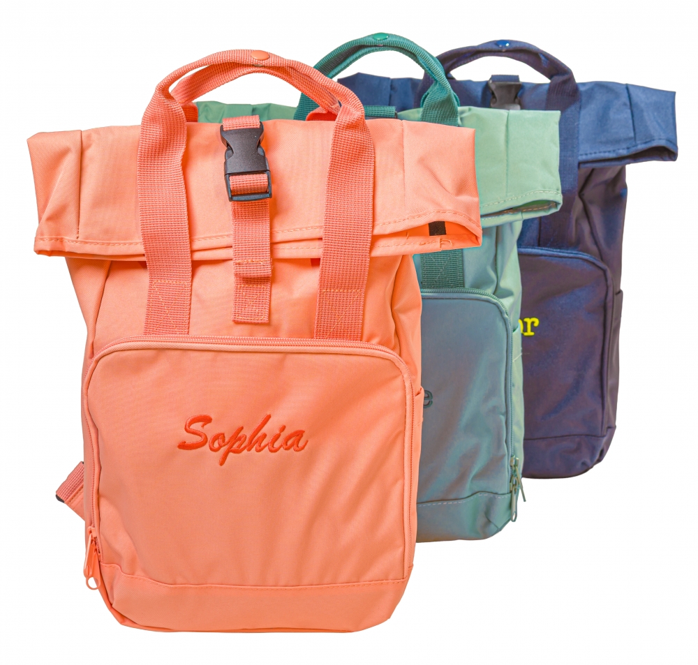 Omschrijving: rugzak gemaakt uit gerecycleerd polyester. extern zakje aan de zijkant voor drinkfles. gewatteerd achterpaneel, roll-top sluiting