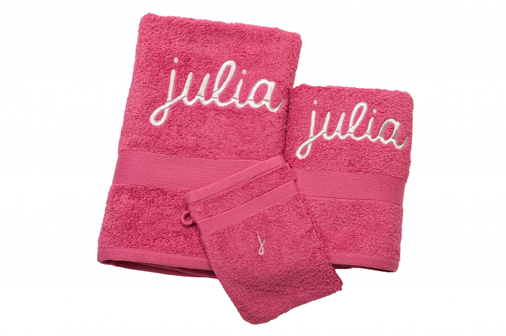 Omschrijving: set bestaande uit een washandje, handdoek & douchelaken. borduring naar keuze