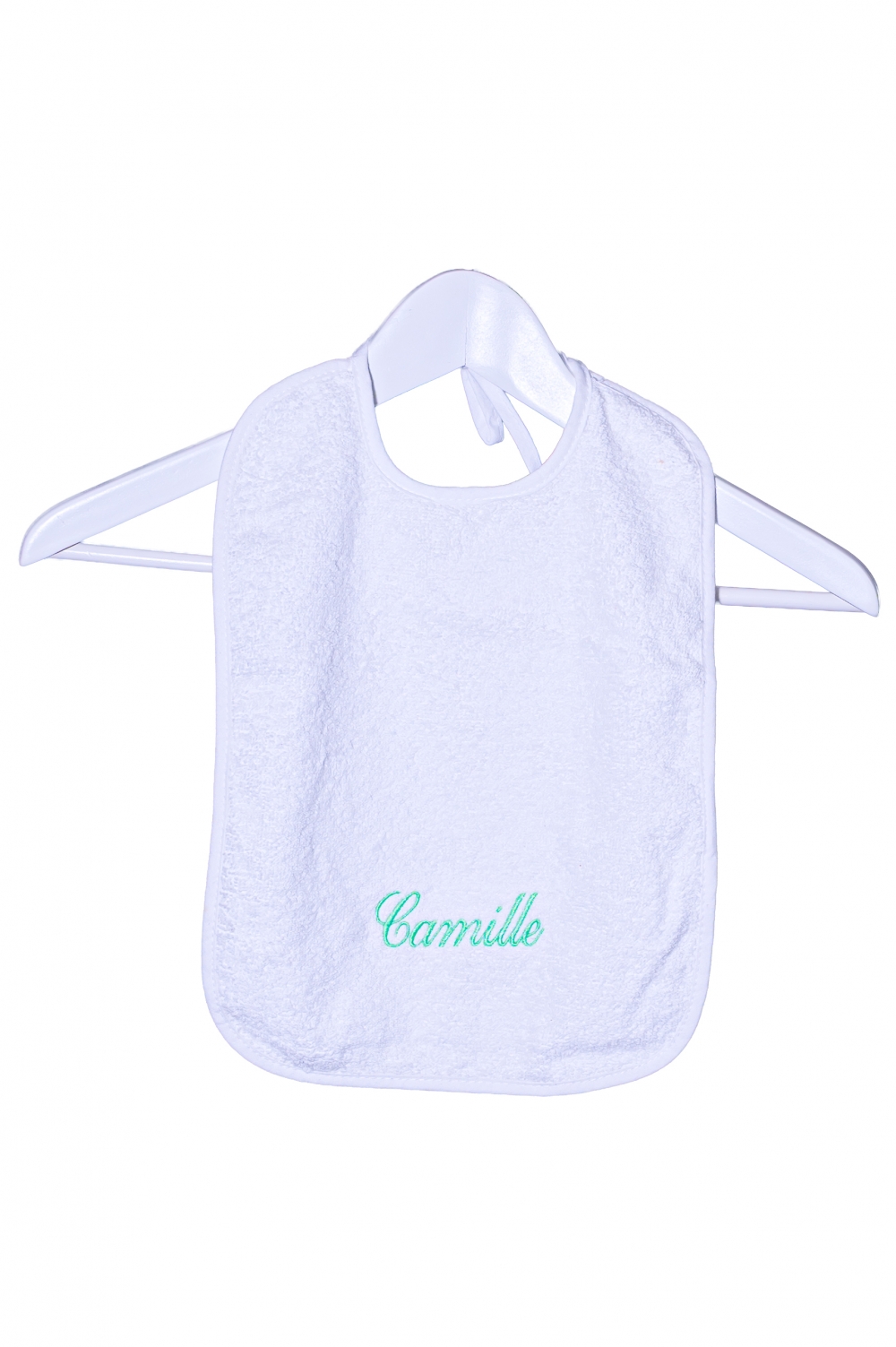 Omschrijving: effen slabbetje in éponge met koordje