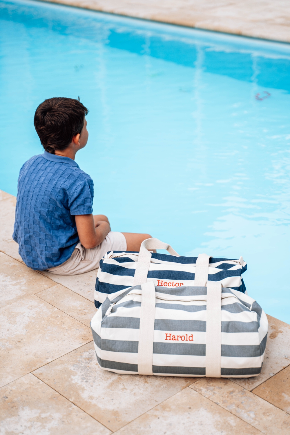 Omschrijving: sporttas met lichtbeige handvat, hoofdvak met ritssluiting, katoenen geweven draaggrepen. ideaal als sporttas of sleepovertas