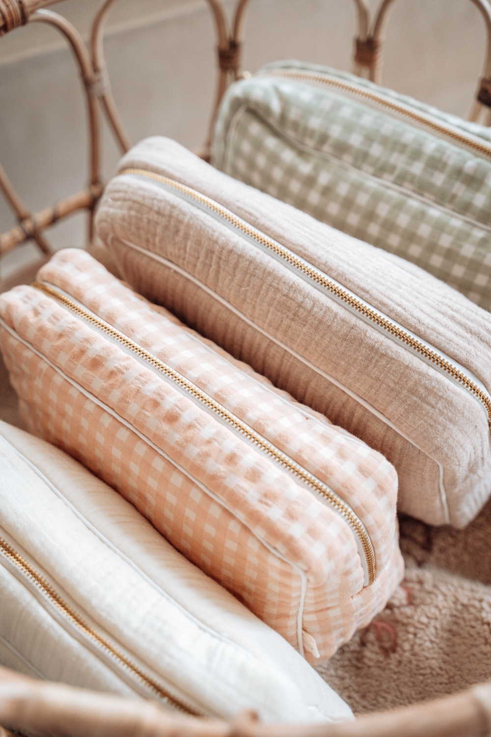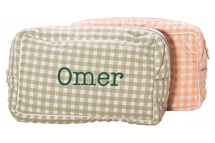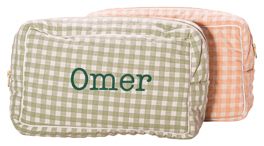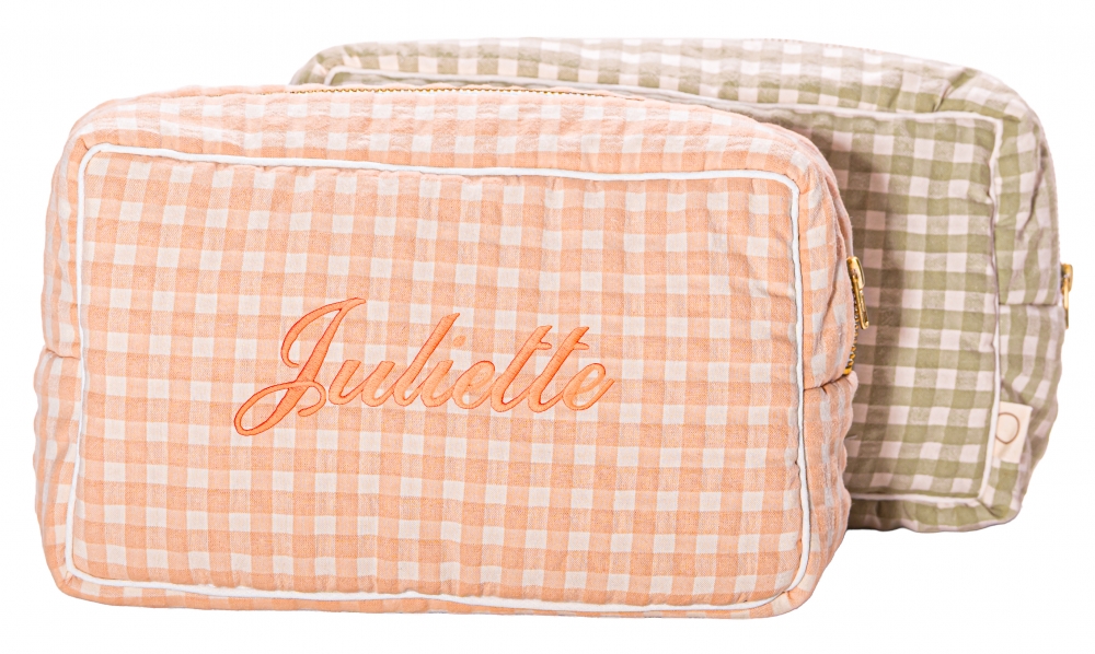 Omschrijving: toilettas met ritssluiting, geruite stof. zeer mooie, kwaliteitsvolle stof. binnenin afgewerkt met tetrastof