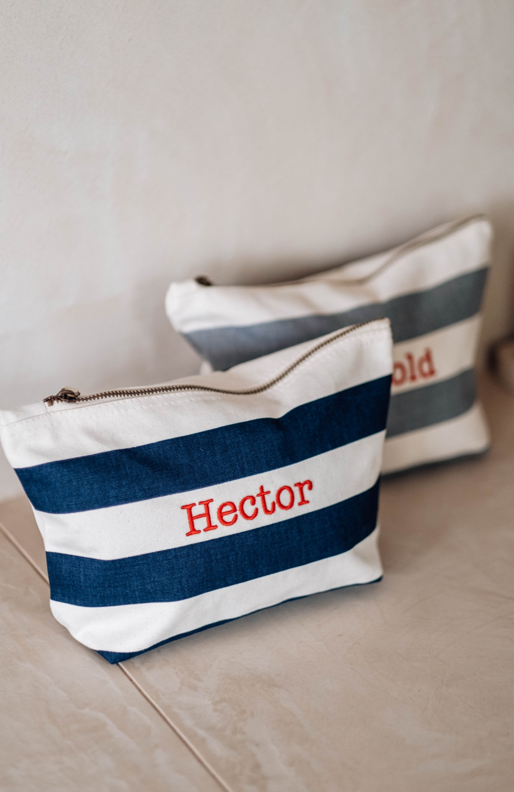 Omschrijving: toilettas in gedrukt streep design met ritssluiting. duurzame canvas
