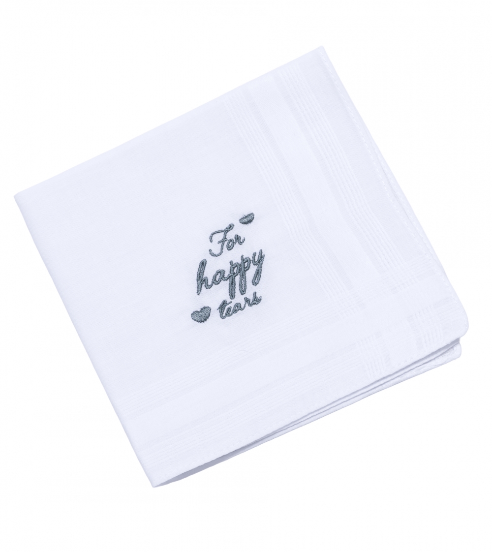 Omschrijving: witte vrouwenzakdoek met boord, borduring vrij te kiezen